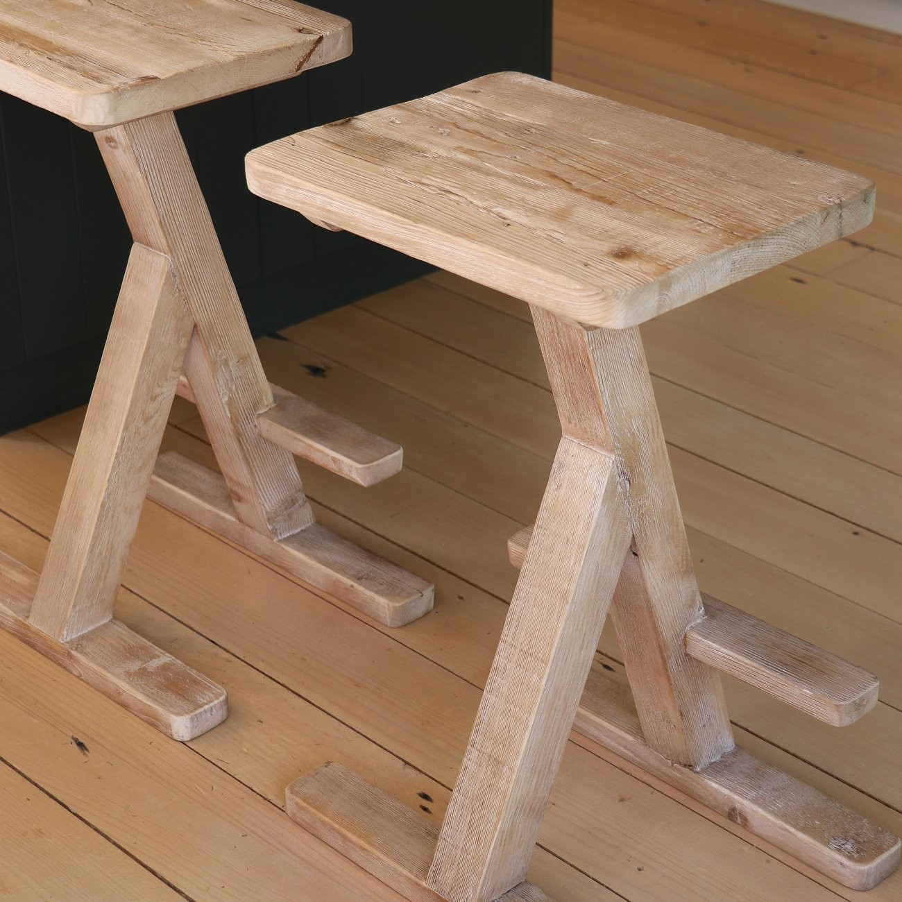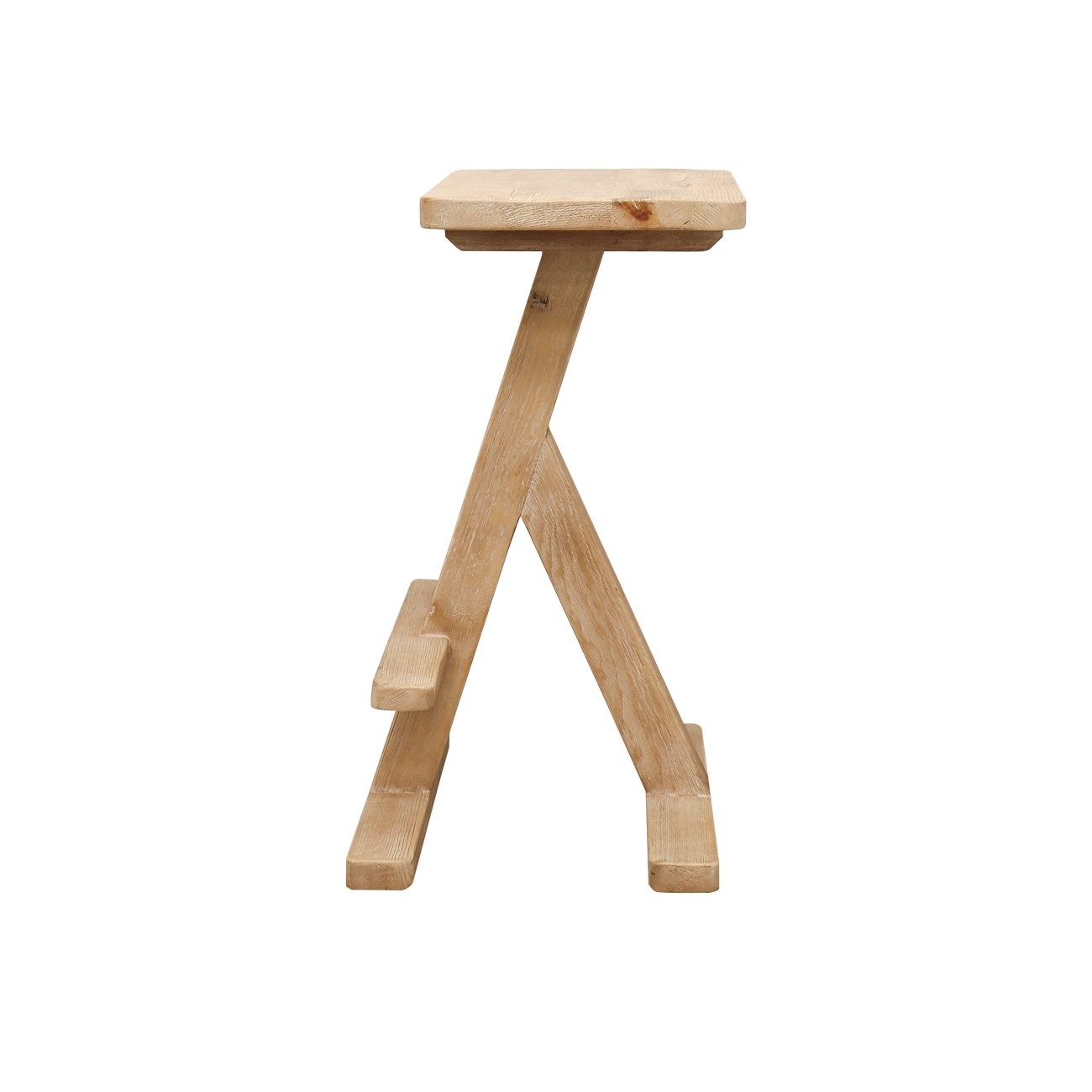 Combine a farmhouse kitchen and shaker style in this unique stool.  Produced from recycled pine, it’s flat wooden top belies it’s comfort and has the added benefit of a practical foot support.
