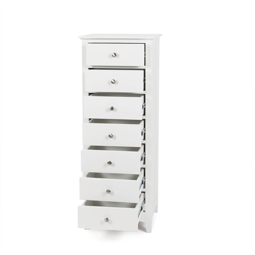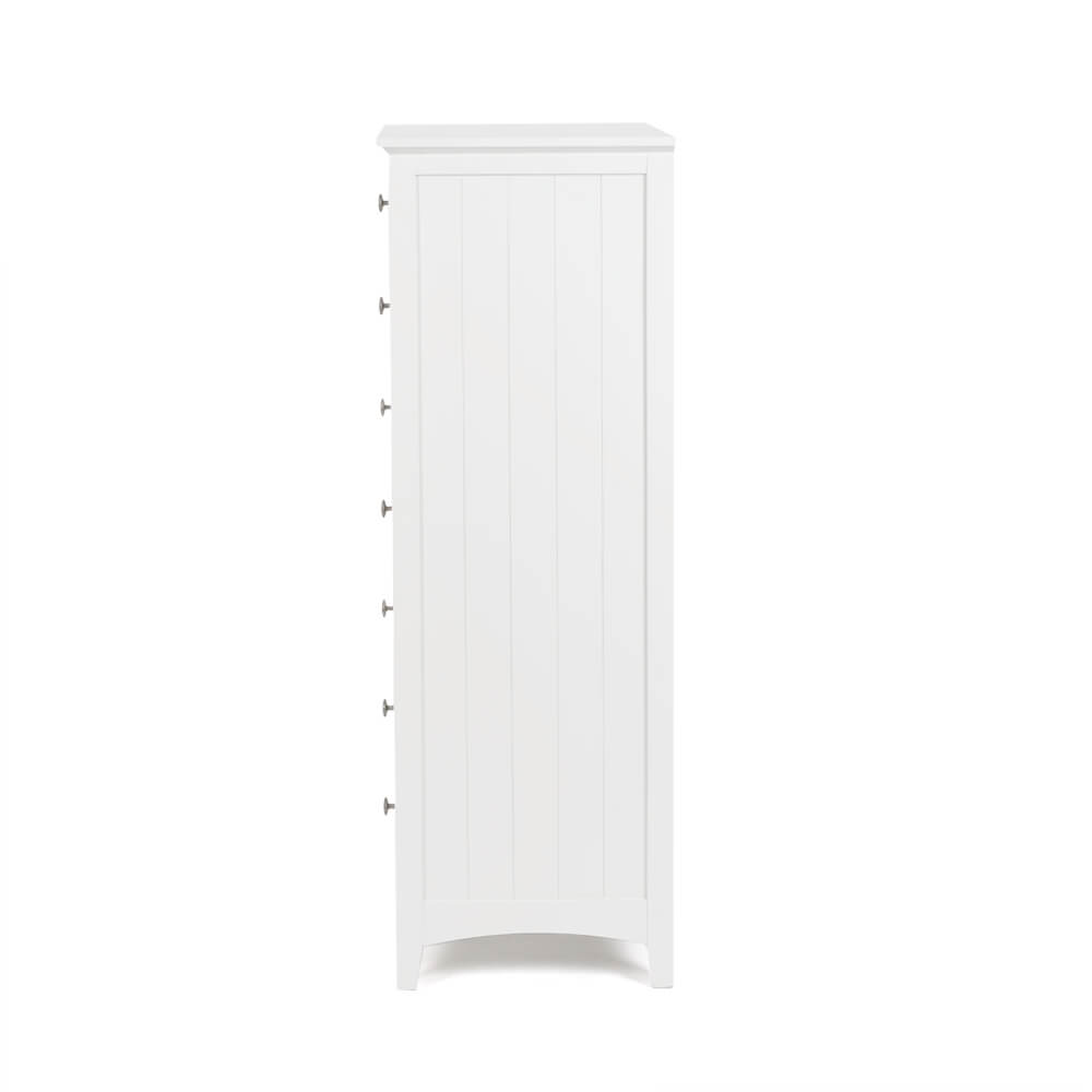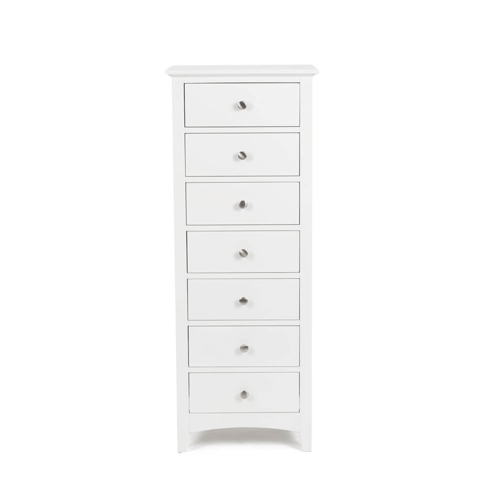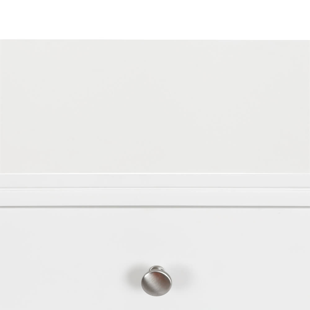 Construction Solid hardwood Acacia framing and MDF panels all coated in a durable satiny smooth white finish. Quality drawer runners and smart stainless knobs (that can be easily removed and replaced with something more fun!).  The Jessica also comes with safety wall fixtures which we highly recommend you attach to stop budding mountaineers scaling her drawers.
