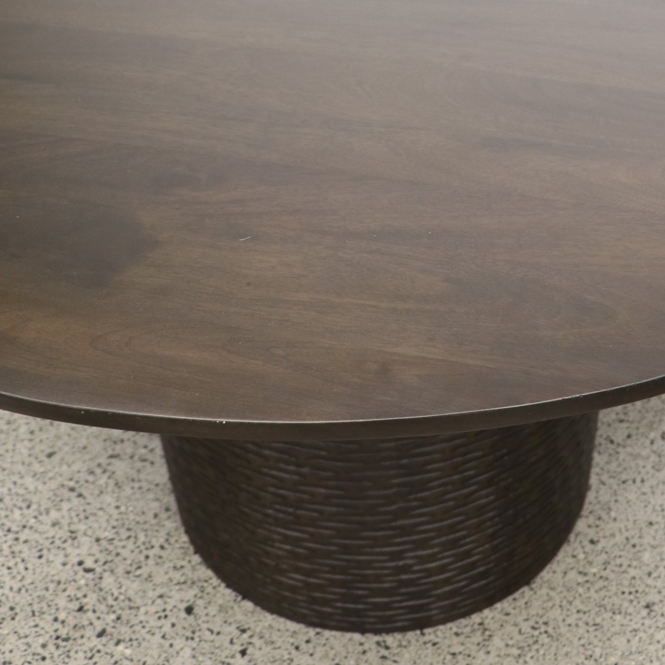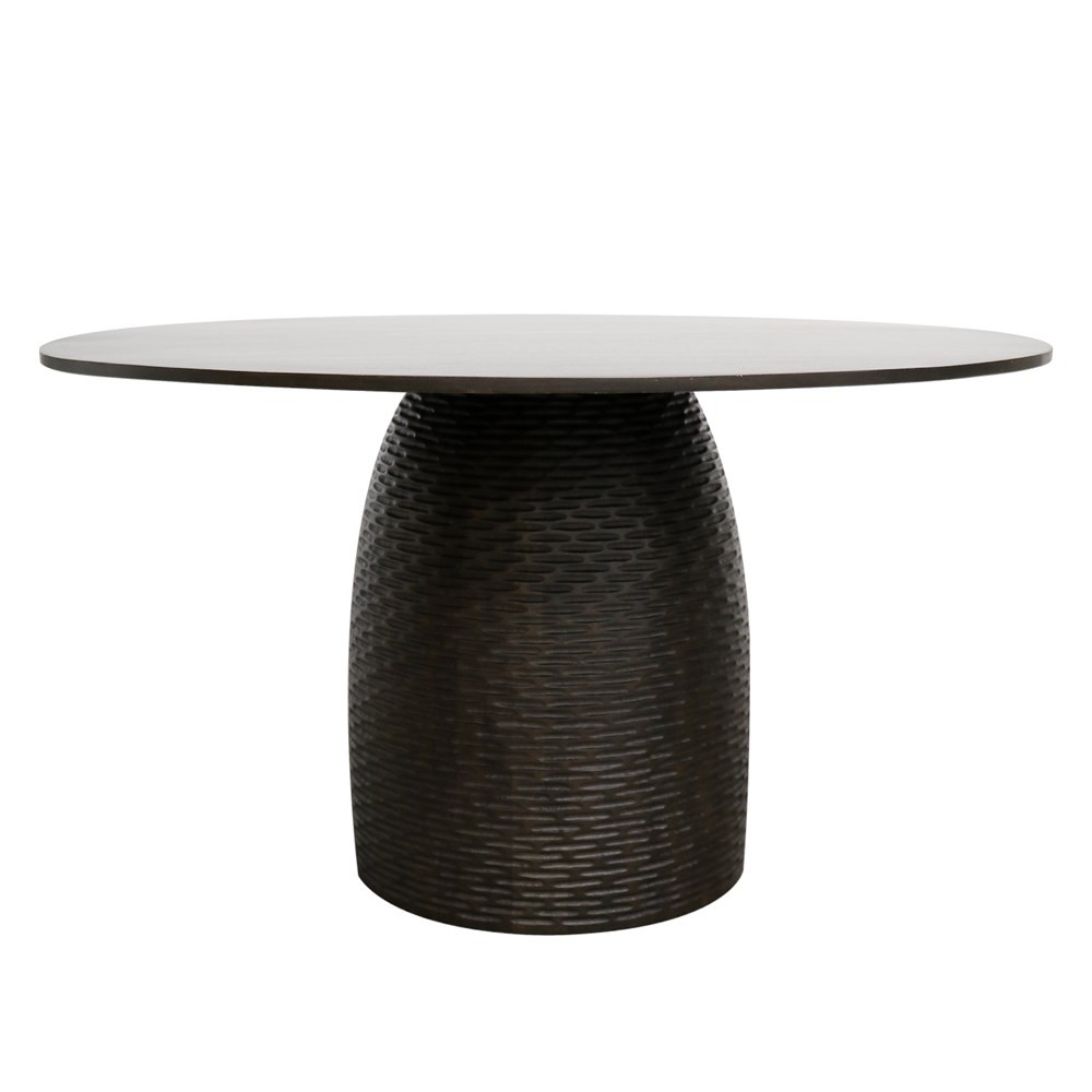 Make a statement in your dining room with a Vienna Round Dining Table. Produced from Mango Wood and stained a warm brown colour the base of the Vienna table has been handcarved.